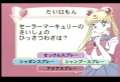 ce jeu est un quizz, tout d'abord vous devez choisir un personnage a secourir : endymion, serenity, luna ou pluton. ensuite vous choisissez votre senshi parmi les 5 sailors : moon, mercure, mars , venus et jupiter. chaque sailor doit vaincre un démon ( démon connu car rencontré dans les différentes saisons). tout d'abord vous devez répondre a 10 questions en tant qu'individu (usagi, ami etc...) a la fin des dix questions vous vous transformez (vidéos a l'appuis) vous avez alors une deuxième séries de 10 questions et la enfin vous détruisez le démon par une attaque (vidéos également).